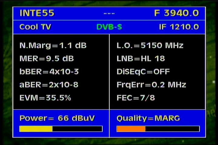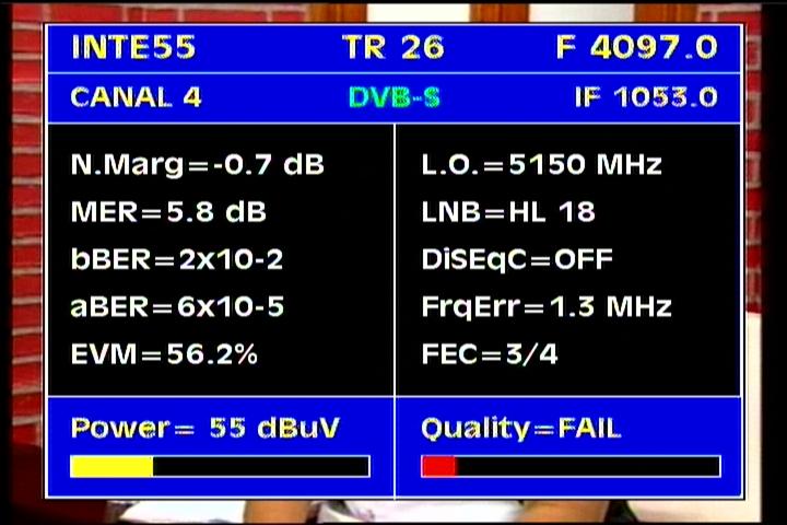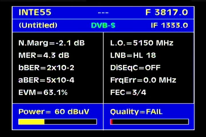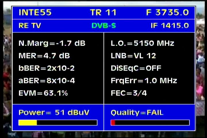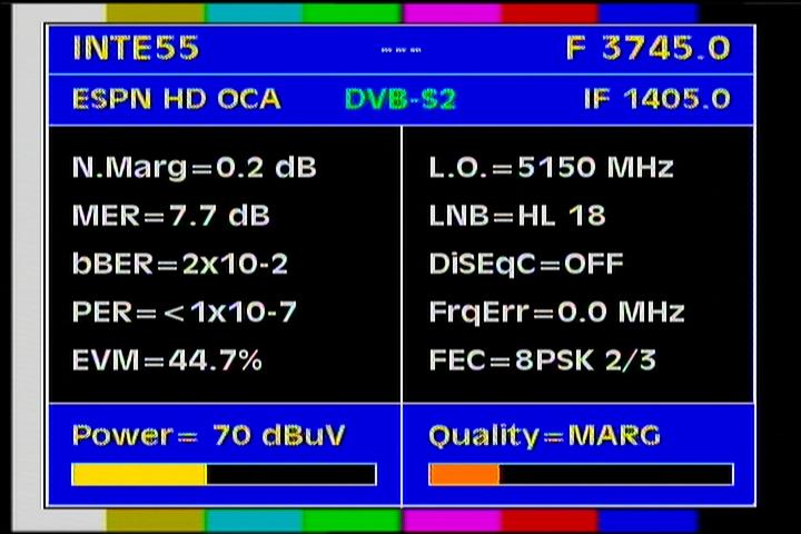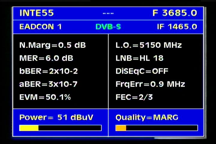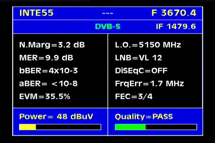 on the packet RPP at f=3 670 MHz .Threshold level required to identify the carrier at FEC 2/3 is the MER=3 dB .