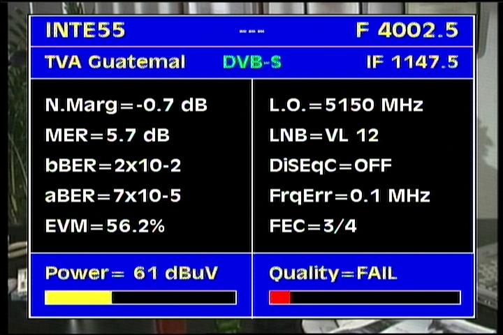 Intelsat 805 at 55.5 w _ Hemi footprint_4 002 V Azteca TV Guatemala _IF dataIntelsat 805 at 55.5 w _ Hemi footprint_4 002 V Azteca TV Guatemala _Q dataIntelsat 805 at 55.5 w _ Hemi footprint_4 002 V Azteca TV Guatemala _NIT data