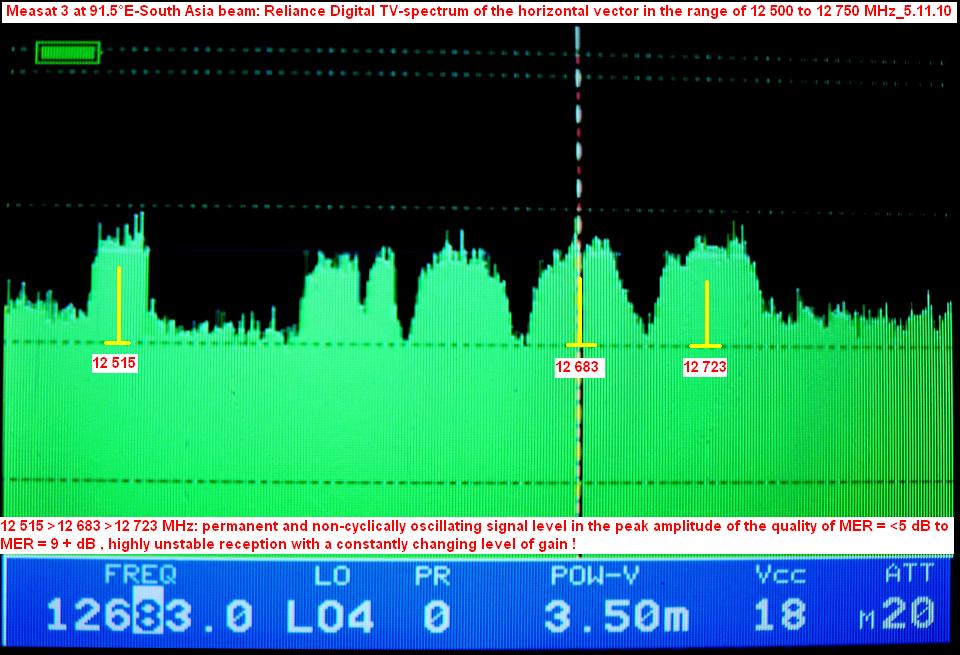 Measat 3 at 91.5°E-Reliance Digital TV : identification of the satellites in orbit by ULPC Beacon -f-