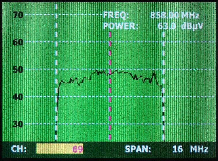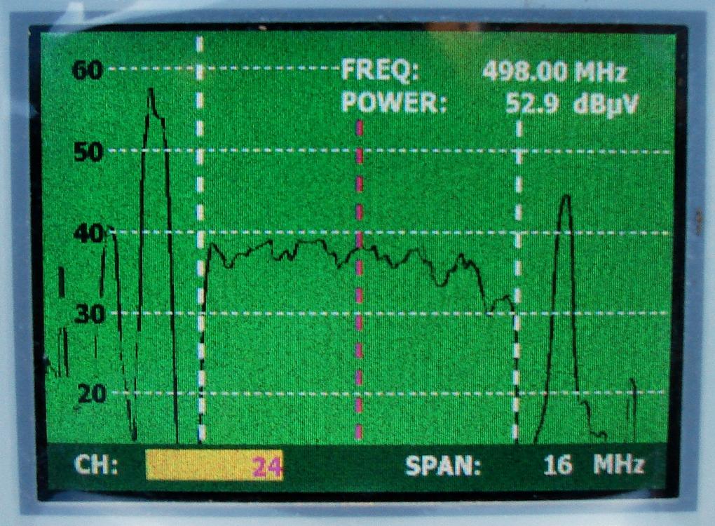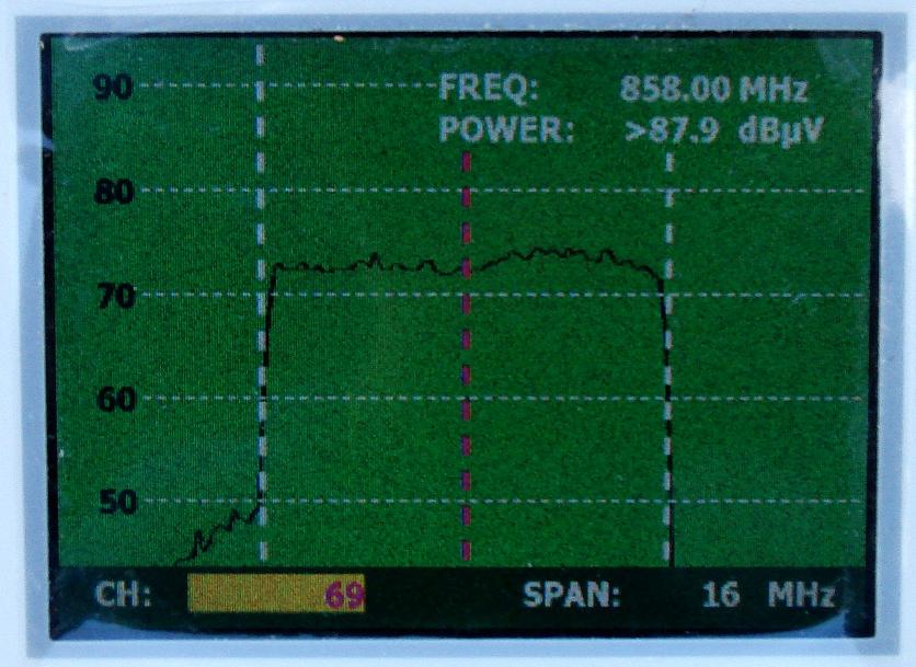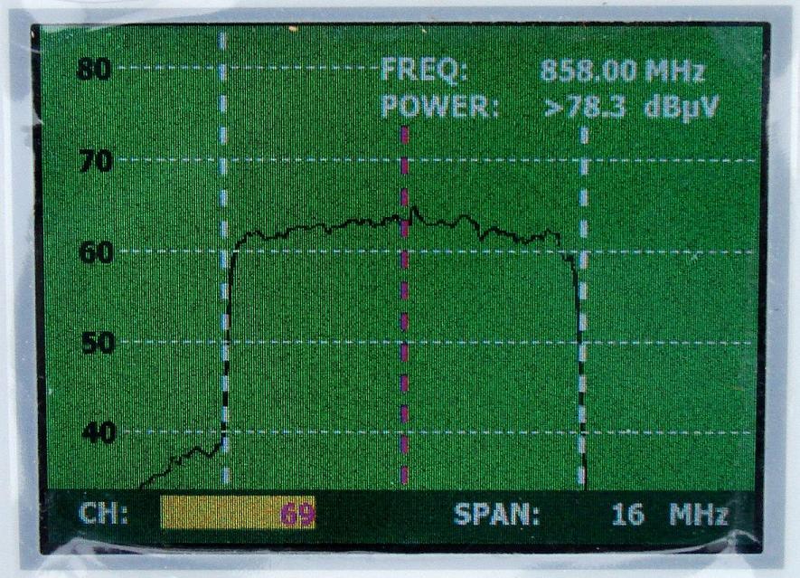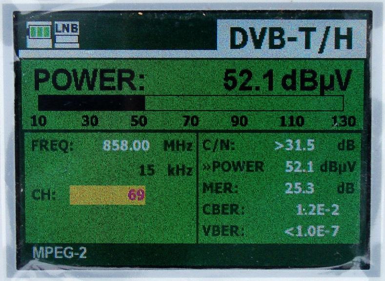 Meranie č.2 / Haluzice : vysielač Veľká Javorina - Kanál 69 vertikál - anténa Color 21 prvkov ...
