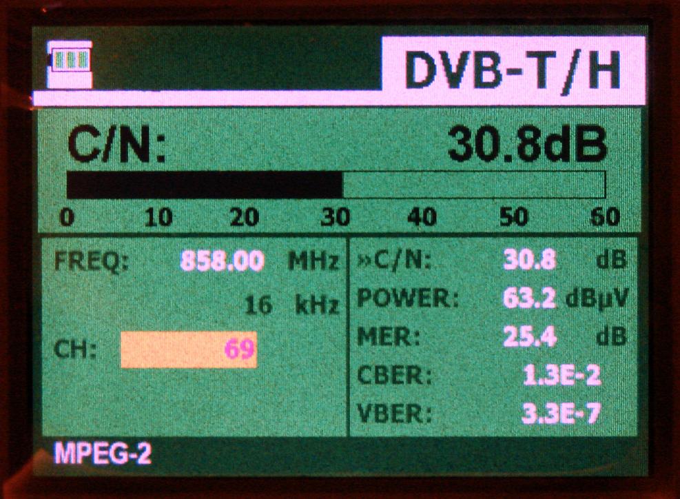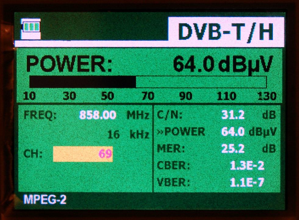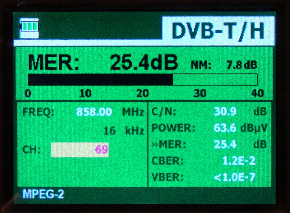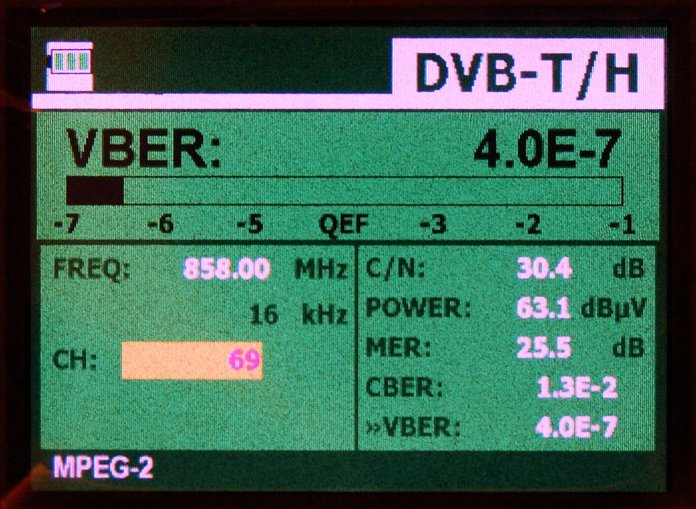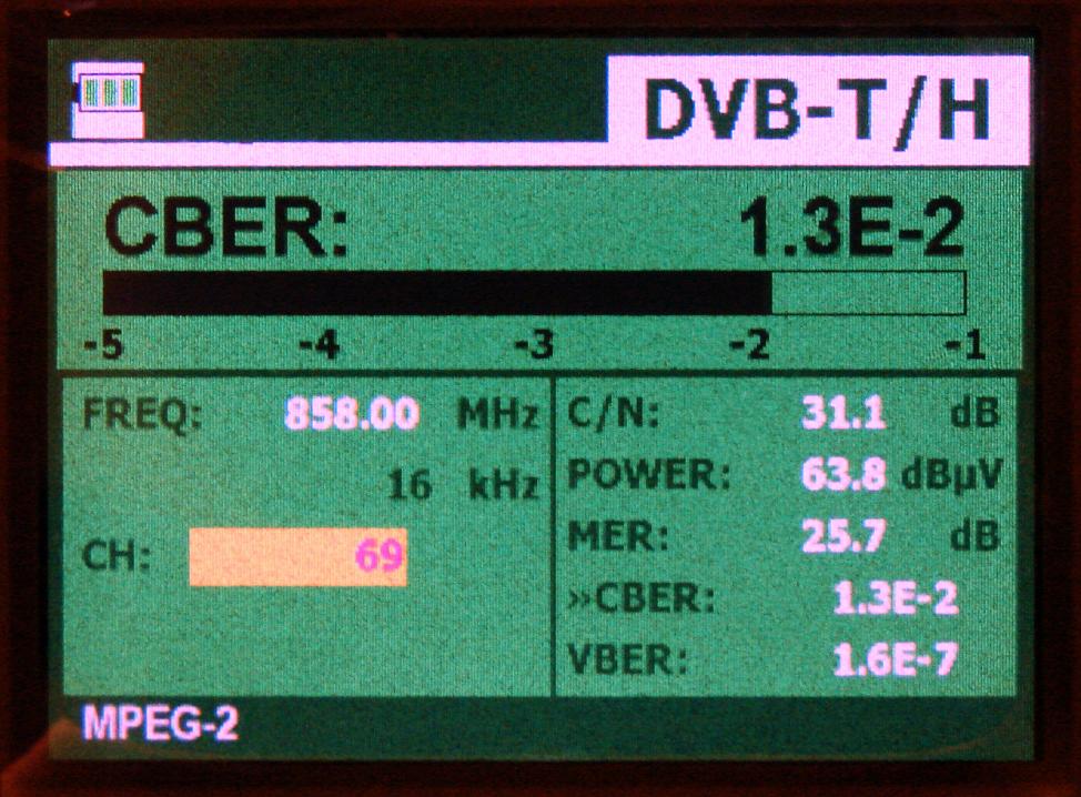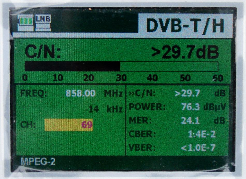 M.Margala Bošáca : Merania na DVB-T multiplexoch z vysielačov Veľká Javorina /K69/ a Kahlenberg Viedeň /K24/ s analyzátorom Promax Prodig 5 TV Explorer na západnom Slovensku
