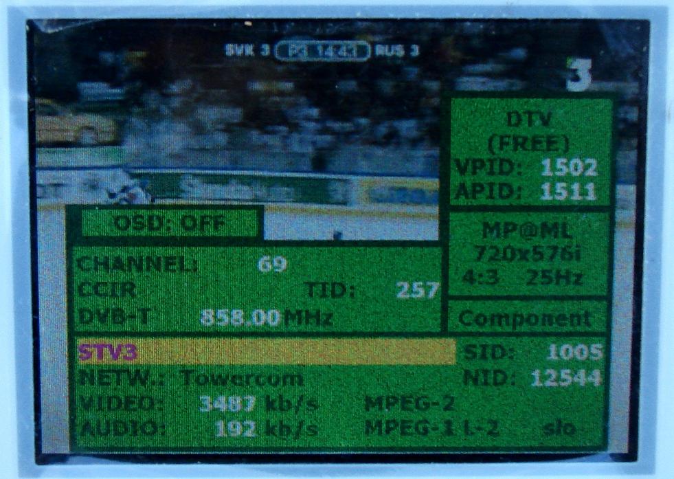 •  Vysielač   :  Velká javorina , kanál  69 , vertikál