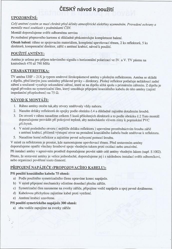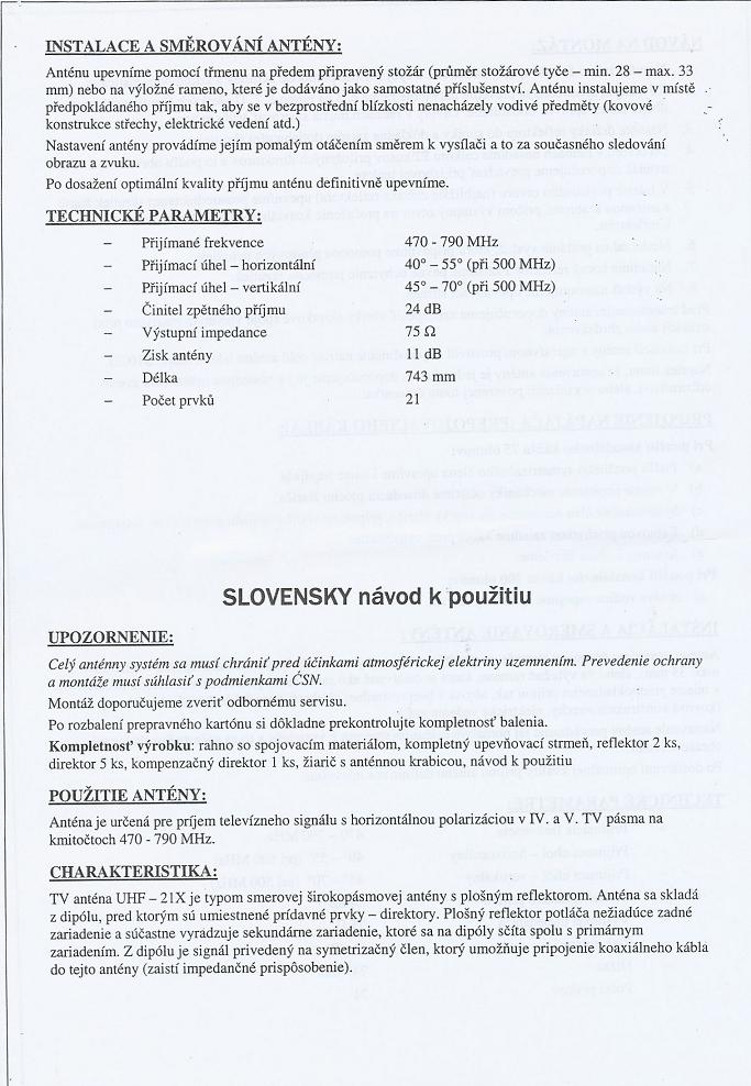• Meracia anténa   :  Astra širokopásmová 3 prvky