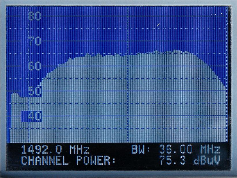 ekvivalentných ziskových hladín antény v celom orbitálnom rozsahu 40° (pri teoretickom predpoklade rovnakej hladiny príchodzieho