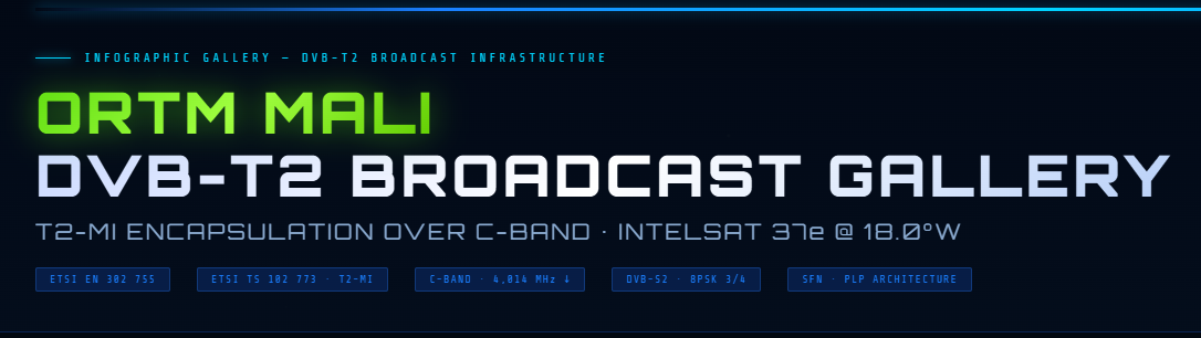 Keywords:  DVB-T2, T2-MI, Physical Layer Pipe (PLP), Intelsat 37e, C-band satellite broadcasting, ORTM Mali, digital terrestrial television, SFN, Africa DTT, ETSI EN 302 755, ETSI TS 102 773