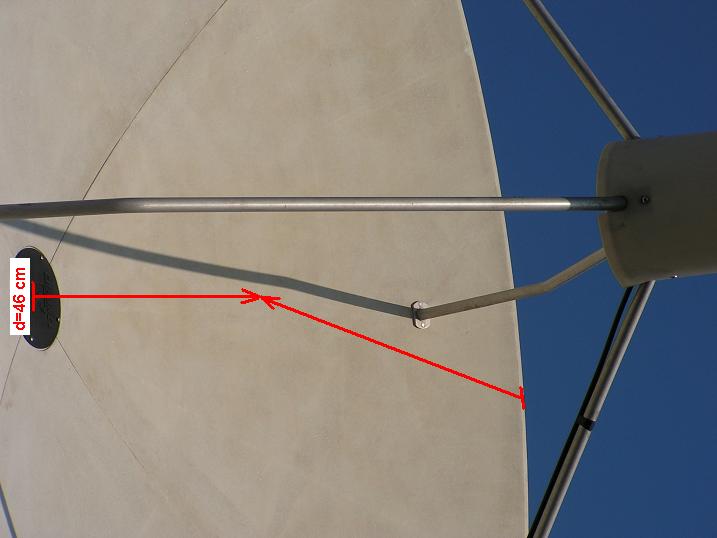 Chyba v tomto prípade / v porovnaní s prípadom antény IRTE 310 cm/samozrejme nebola v zlom návrhu tvaru reflektora antény alebo v poddajnosti materiálu,ktorý bol z mimoriadne pevného polyesteru ,ktorý na dlhé obdobie garantuje tvarovú a ziskovú stálosť reflektora alebo v tom že reflektor je zložený zo segmentov ale v tom že rozdiel až 2 dB !!! zo zisku "G" čo je obrovský rozdiel v kvalite signálu v logaritmickom vyjadrení stál //poznámka :čo je po zanedbaní iných-súvisiacich parametrov v praxi porovnatelný teoretrický rozdiel v zisku medzi priemerom antény 180 cm a 300 cm // - "len" na 1 mm z ohniskovej vzdialenosti "f".Čiže v praxi rozlišujem nemožnosť dosiahnutia ZISKU pri väčších priemeroch antén kvôli nesprávnej konštrukcii antény - viď. IRTE 310 cm alebo kvôli nesprávnemu nastaveniu celého anténneho systému.Ako som už viackrát popisoval prakticky overiť teoreticky udávaný zisk v praxi možno len na transpondéroch vysielaných vo vyžarovacích diagramoch,ktoré priamo nepokrývajú-nie sú určené pre strednú EU - napr : DX ASTRA 2D na 28,2°E + DX INTELSAT 902 Middle East beam na 62°E + DX AMOS 2 Middle East beam na 4,0°W , lebo nie je ničím výnimočným že s priemerom kvalitnej ofsetovej antény s priemerom 90 cm môžete pri analýze signálnej kvality na družici Astra 19,2°E dosiahnúť "vyššiu" signálnu kvalitu ako na rovnakom prenose s priemerom antény 300 cm,ale to už úplne iný problém,ktorý nesúvisí so správnym nastavením alebo konštrukčným vyhotovením antény...