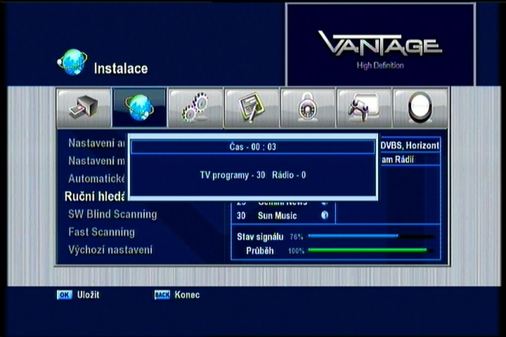 in the measuring point, measuring results over a period of 120 min. confirmed that the average level of gain on DVB-S