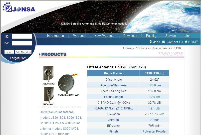 measurement results are derived from the 120x132 cm diameter offset antenna