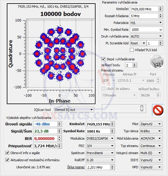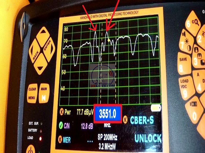 vysielania/paketu na f=3 551 MHz zo satelitu Thaicom 5 na λ=78.5° vd týmto demonštruje aj v praktických meraniach :
