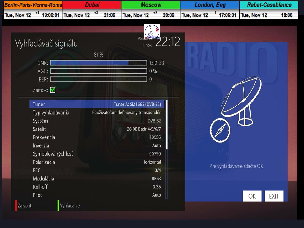 im mitteleuropäischen Raum des Satelliten Badr 7 bei 26,0°O, verfasst von dem Autor Roman Dávid aus Lučenec