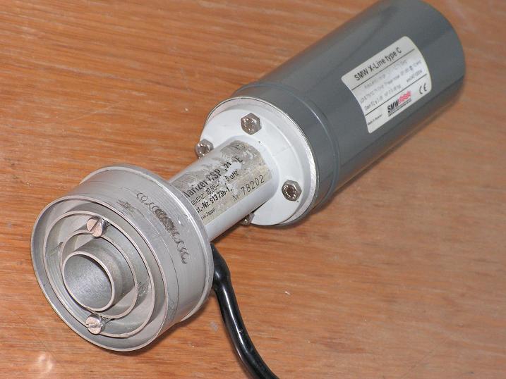 obr č.1 : 4, Ožarovač určený výlučne pre stredové antény s pomerom f/D od 0,32 do 0,36 od čoho sa odvíja aj vyšší parameter samotnej hĺbky antény "d",ktorá má v teoretickom ponímaní súvis s účinnosťou samotného reflektora,pričom v praxi sa mi naplnil teoretický predpoklad že čím nižšia hĺbka anténneho reflektora/plytšia anténa/ tým dosahuje reflektor vyššiu účinnosť koncentrácie signálu do ohniska pri samozrejme dlhšej ohniskovaj vzdialenosti "f".Konkrétne tento kus ožarovača bol vyrobený v roku 1987 v závode firmy SALORA-NOKIA k vysoko ziskovej stredovej príjmacej anténe priemeru 150 cm z AL,ktorá bola dodávaná spolu s polárnym úchytom zo zliatiny duralu,čiže samotný polarmount bol mimoriadne pevný a ľahký.Vonkajšia signálna jednotka bola tvorená japonským jedno-polaritným konvertorom EPS 020 H s v tej dobe výnimočným šumovým číslom 2,2 dB,ktoré sa dosahovalo v zapojením s tranzistormi typu HEMT - spolu s magnetickým polarizátorom SMW XF 45 .Komplet sa v tej dobe predával v cene 80 000 KČ !!! a tvoril úplný vrchol na trhu.